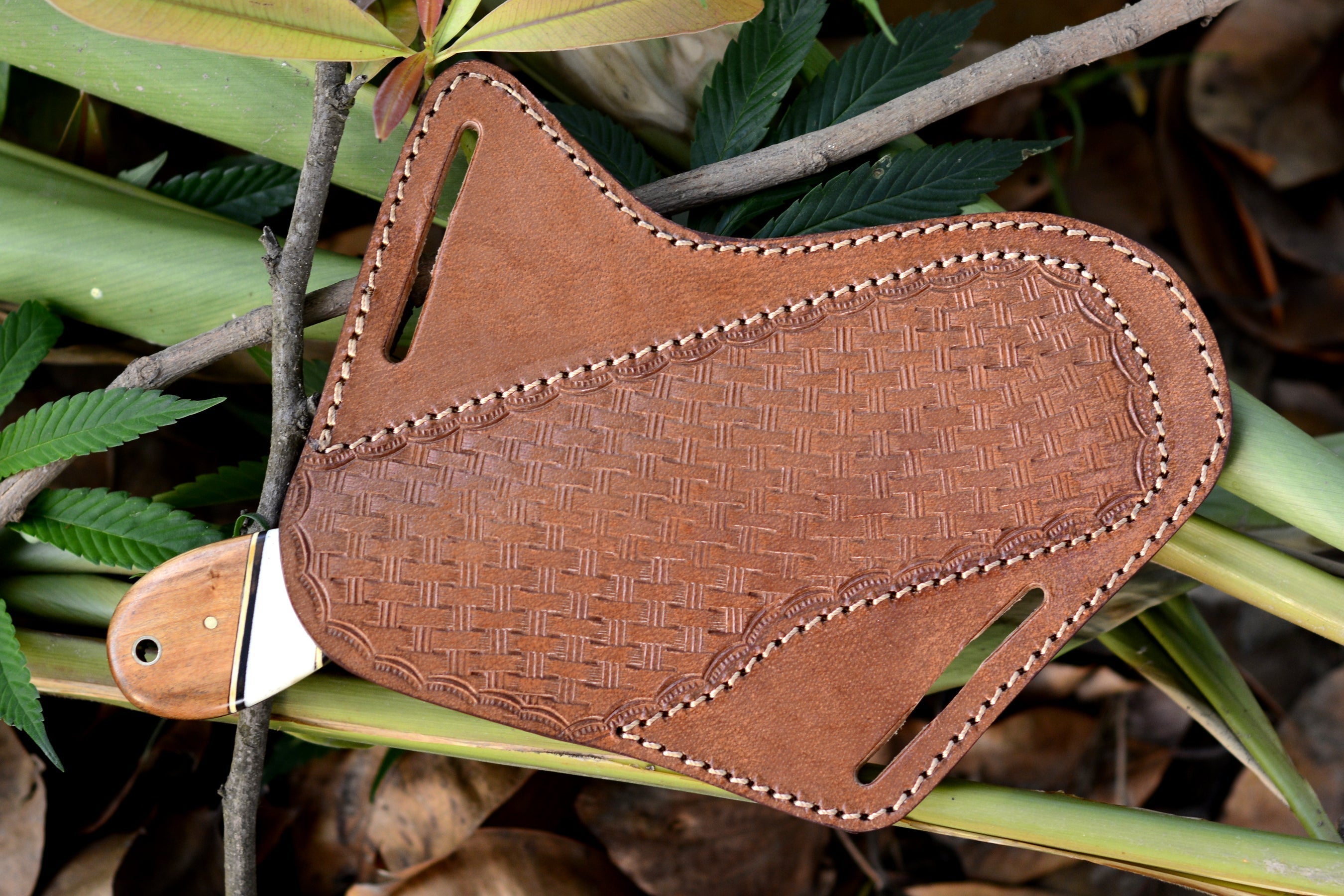 Leather pulls moisture from the air and could rust the blade if not stored properly.